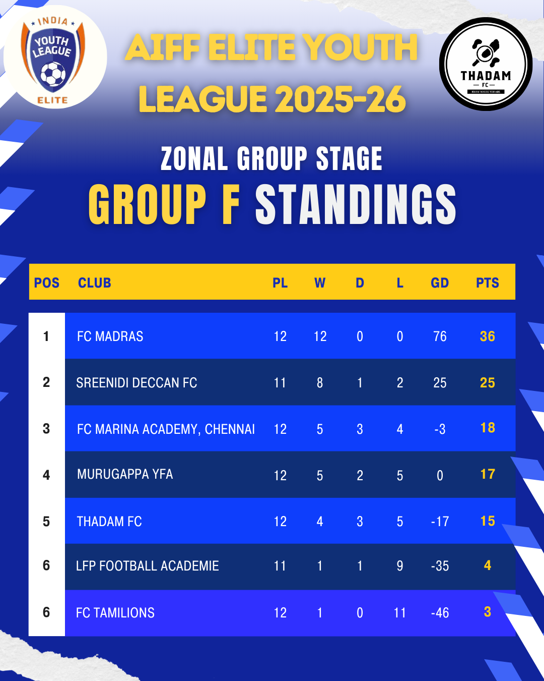 A football club created with the vision of transforming Indian football from the grassroots level. We are dedicated to training and nurturing young talent through well-structured football programs. These initiatives aim to develop athletic and personal skills, ensuring children grow into disciplined individuals capable of balancing their passion for sports with academic success. As an accredited football club by the All India Football Federation (AIFF) Thadam FC is also a recognized football club by the Tamil Nadu Football Association.